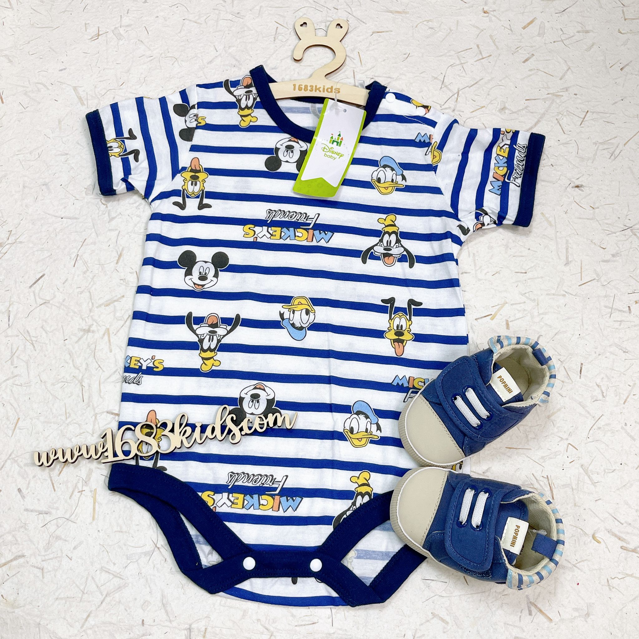 短袖包屁衣-藍白間米奇(size:70/90)