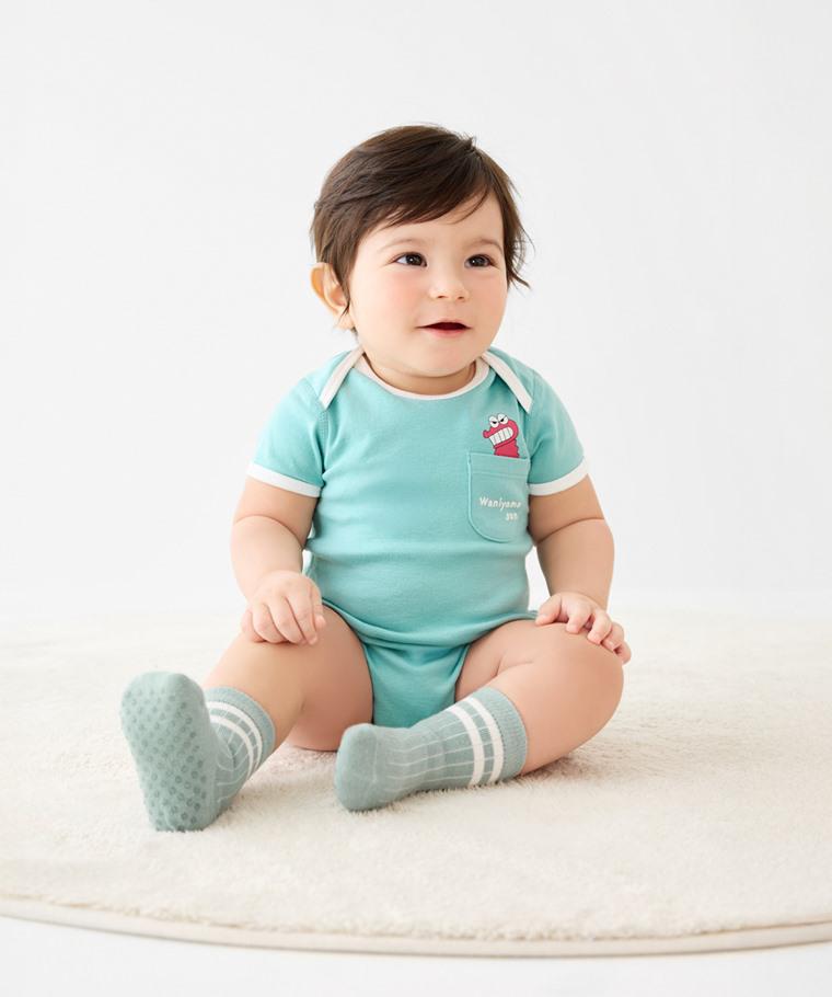 蠟筆小新純棉羅紋包臀衣-淺藍綠
