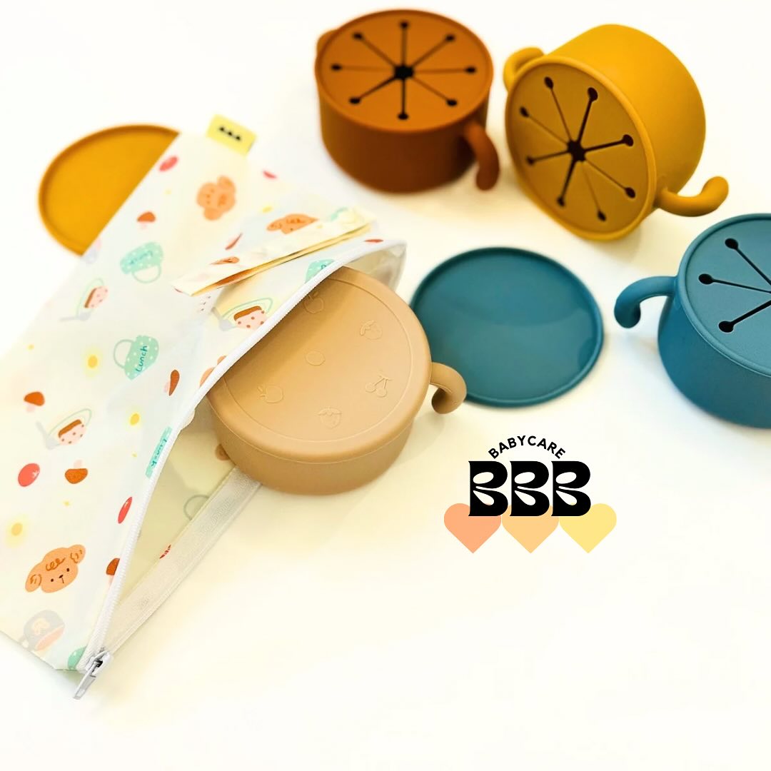 零食杯設有兩個小手柄和蓋子。柔軟的開口確保寶寶的手可以輕鬆滑入和滑出,同時將食物安全地放在裡面。帶蓋零食杯和BBB_Babycare防水收納袋方便媽咪打包和旅行。 這款零食杯是幼兒移動時的必備品。 細節: - 採用 100% 食品級矽膠製成 - 尺寸 9.5 x 9.5 x 5 厘米 - 210 毫升容量 清潔提示: - 用濕紙巾擦拭乾淨 - 用溫和的肥皂和水清洗,然後風乾 - 請勿將產品置於陽光直射或靠近熱源的地方 警告: - 在成人監督下使用,使用產品時請勿讓兒童無人看管 - 每次使用前檢查產品 *BBB防水收納袋款式隨機 Designed with two small handles and with a cover. The soft opening ensures baby‘s hands can slide easily in and out, while keeping food securely inside. Snack cup with cover and BBB_Babycare waterproof storage bag is convenient for mummy to pack and travelling. This snack cup is a must-have for toddlers on the move. Details: - Made with 100% food-grade silicone - Size 9.5 x 9.5 x 5 cm - 210 mL capacity Cleaning tips: -Wipe clean with wet wipes -Wash with gentle soap and water and leave it to air dry -Do not leave products in direct sunlight or near a source of heat Warning: -Always use with adult supervision and do not leave child unattended while using the product -Inspect the product before each use *The design of BBB waterproof storage bag is random