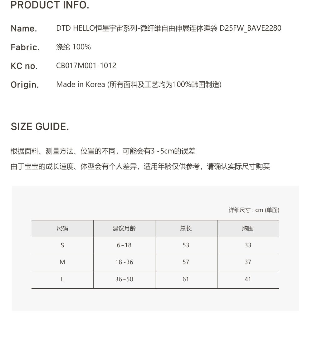 預訂-25F/W🍁DTD HELLO恆星宇宙系列-微纖維自由伸展連體睡袋(貨期5-7星期)