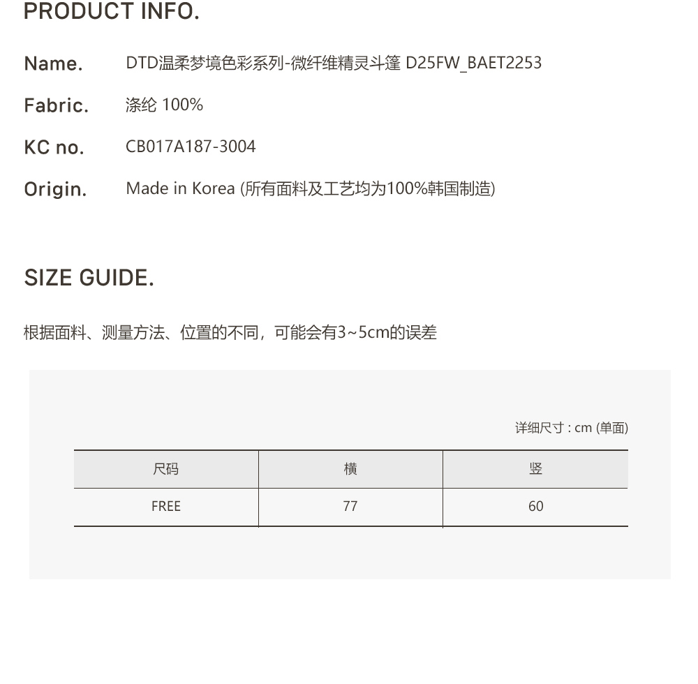 預訂-25F/W DTD溫柔夢境色彩系列-微纖維精靈斗篷(貨期2-3星期)