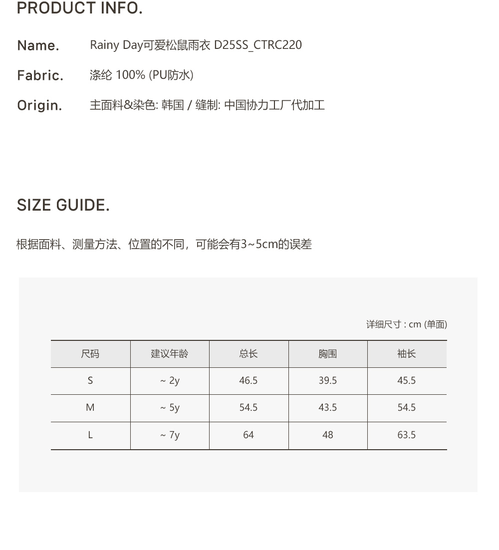 預訂-Rainy Day可愛松鼠一體式雨衣(2-3星期)