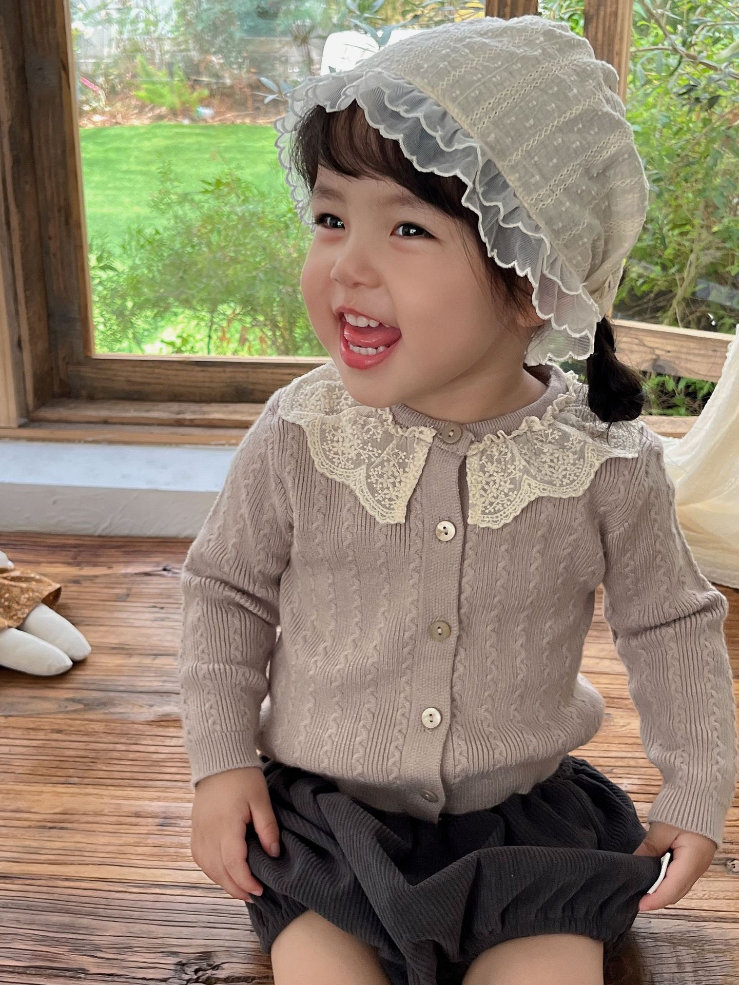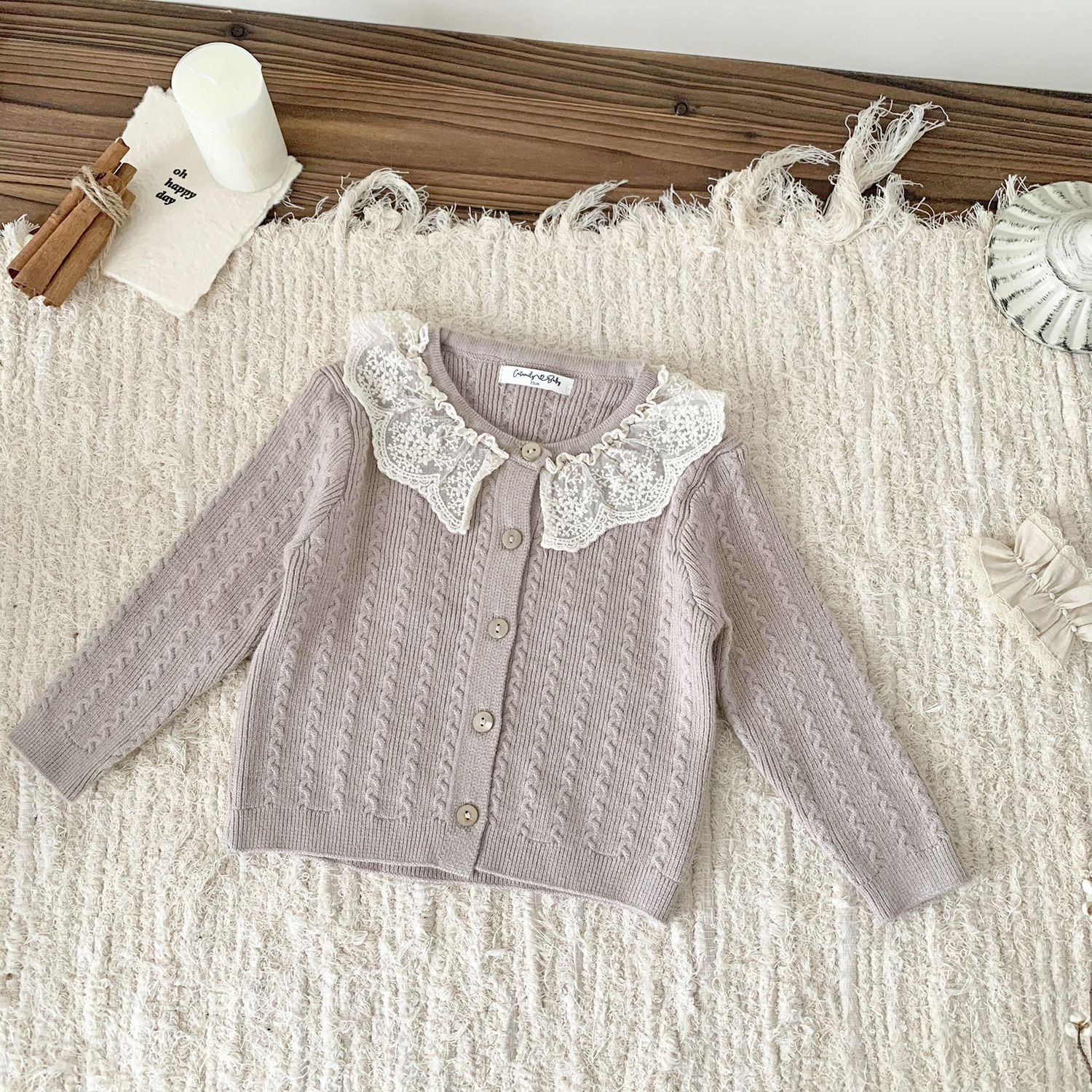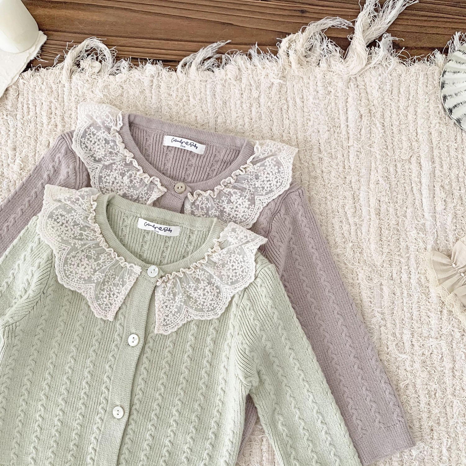 預訂-cutemily 綉花領長袖針織上衣(貨期11月尾)