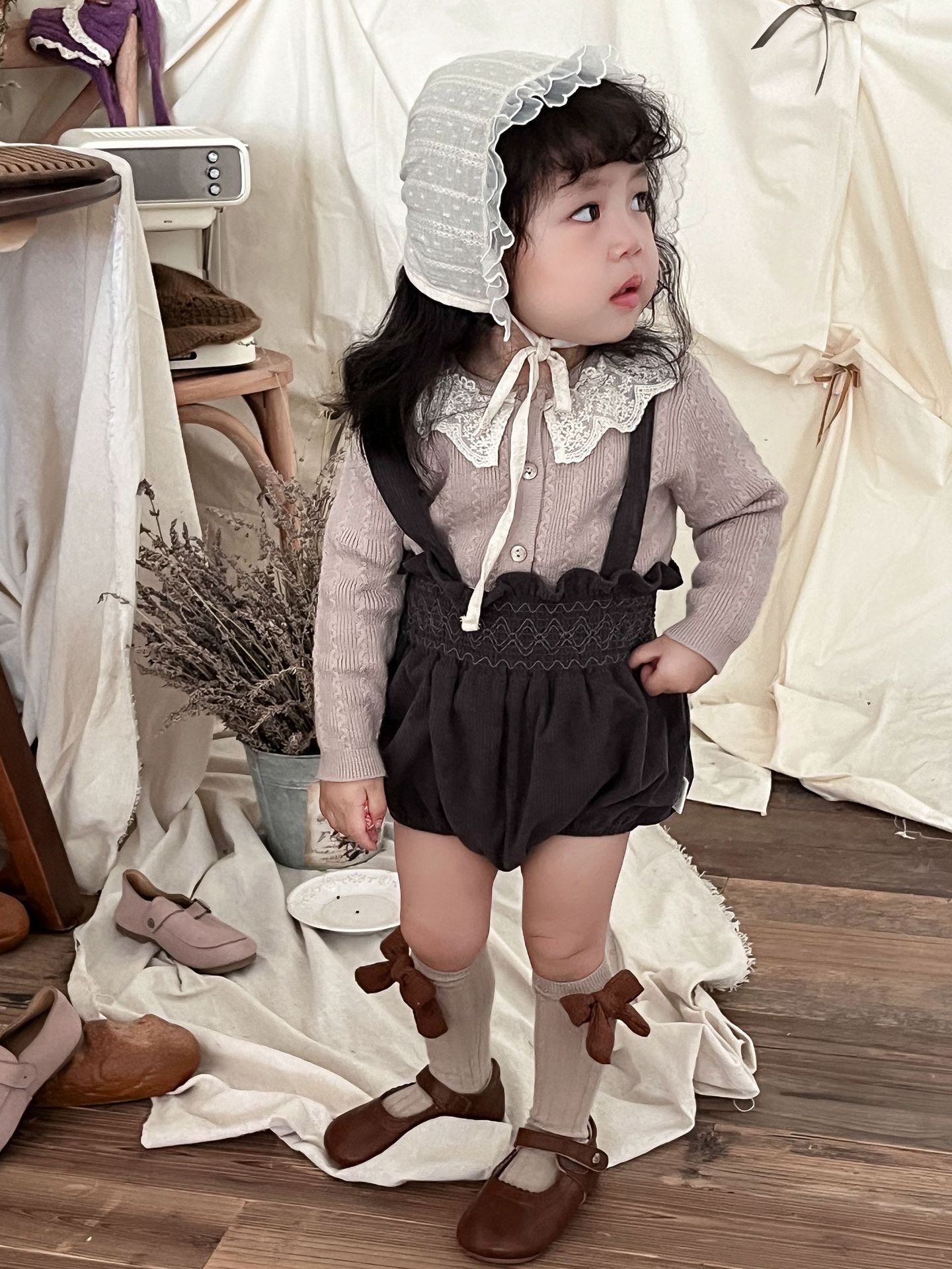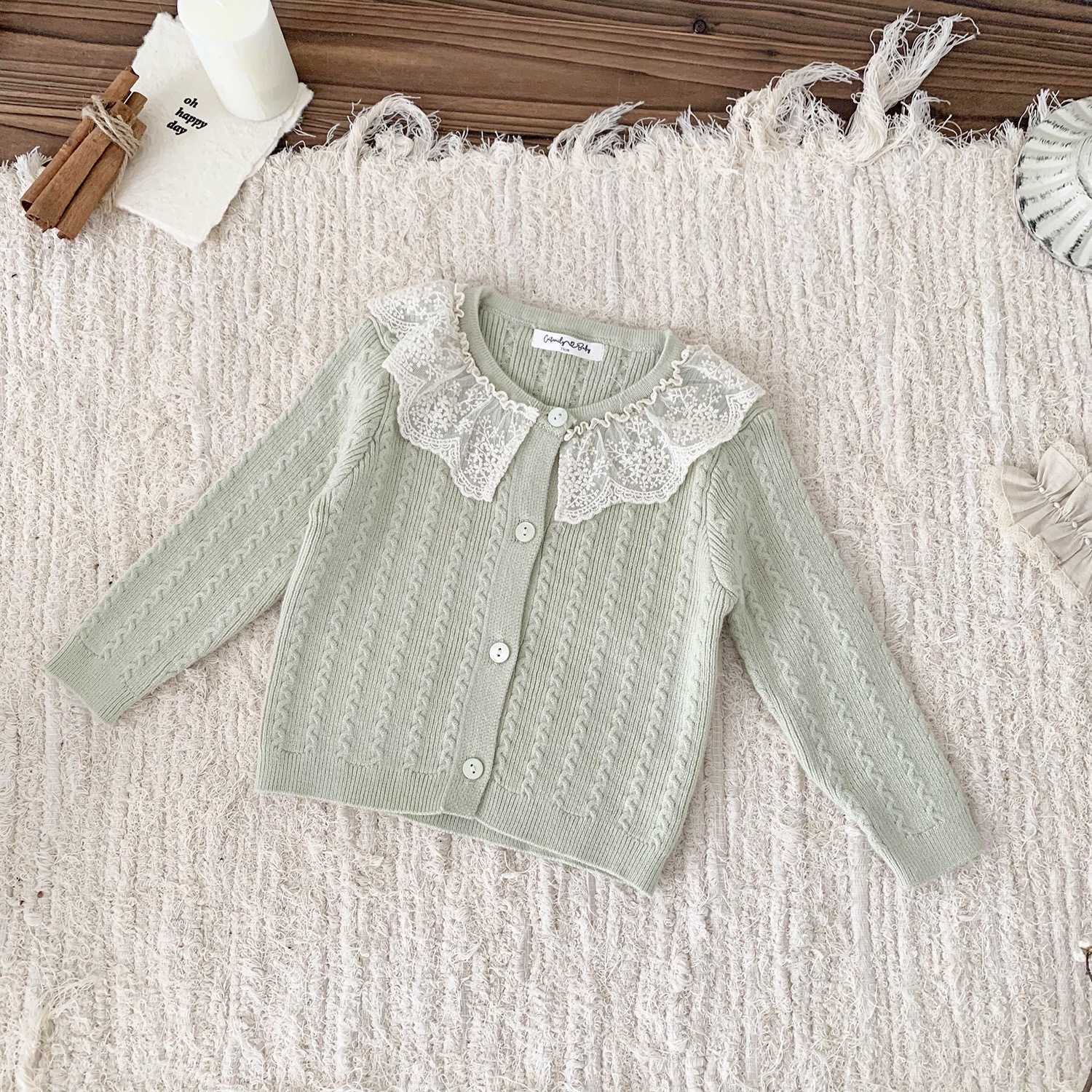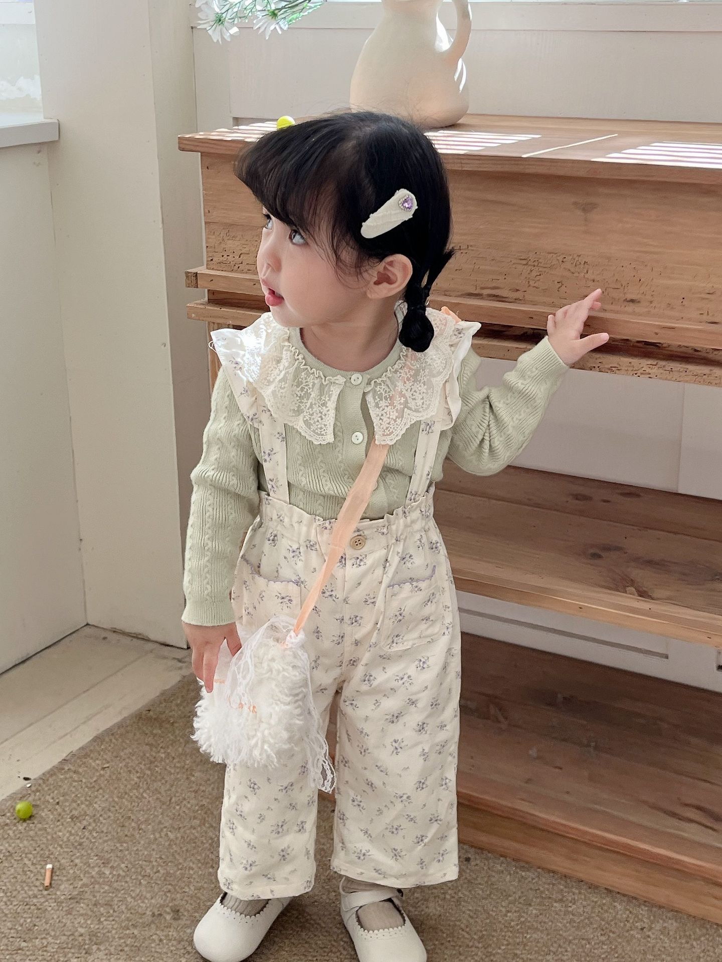 預訂-cutemily 綉花領長袖針織上衣(貨期11月尾)