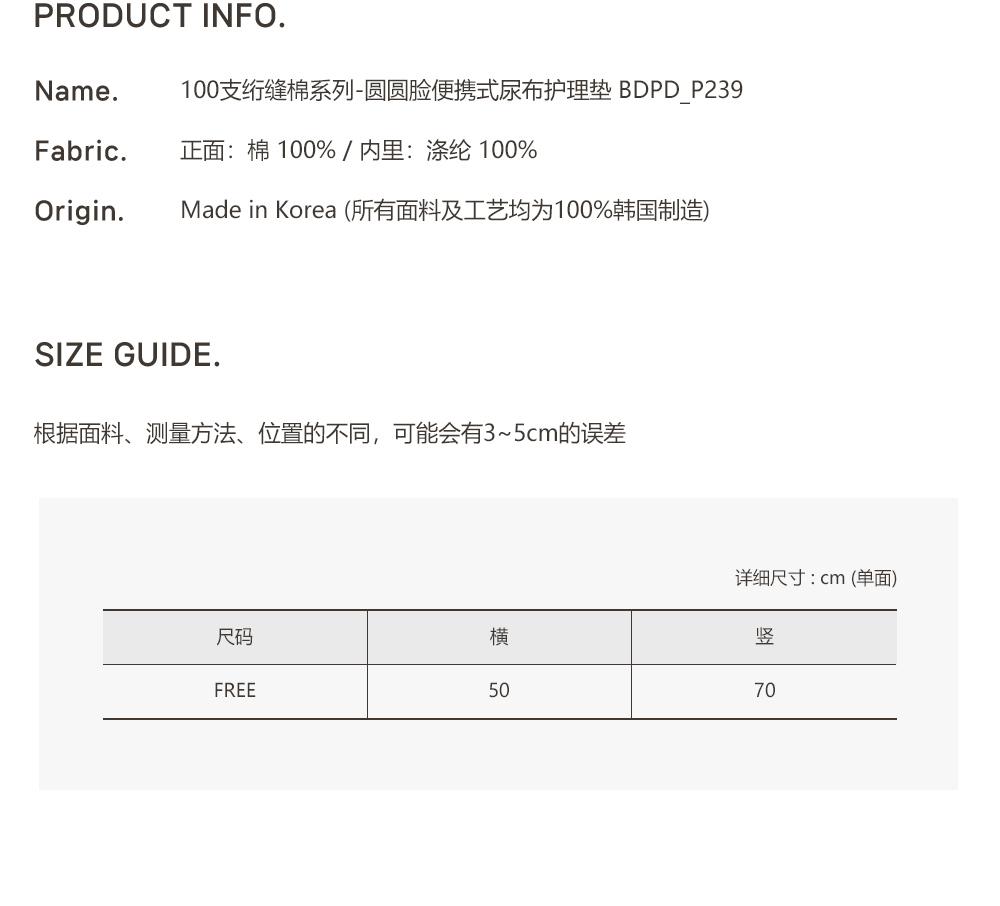 100支絎縫棉系列-圓圓臉便攜式尿布護理墊opt 貨品狀態:預訂✈️2-4星期/現貨