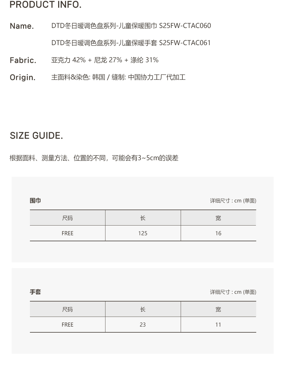 25F/W DTD冬日暖調色盤系列-兒童手套&圍巾(貨期12月)