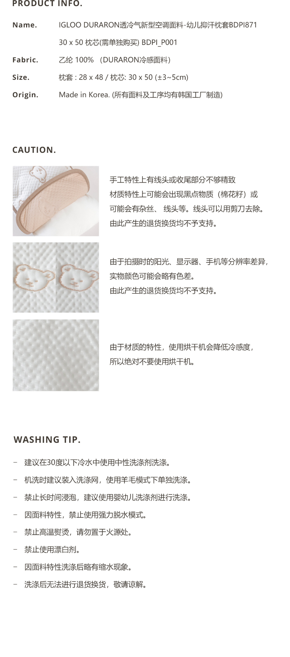 IGLOO DURARON 透冷氣新型空調布料-幼兒抑汗枕套(28x48)