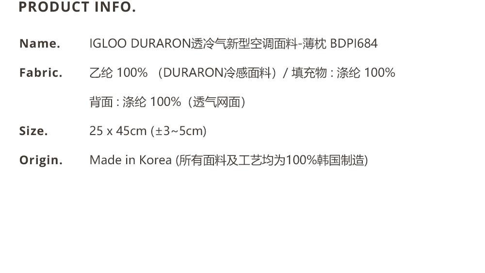 IGLOO DURARON 透冷氣新型空調布料-薄枕(25x45)