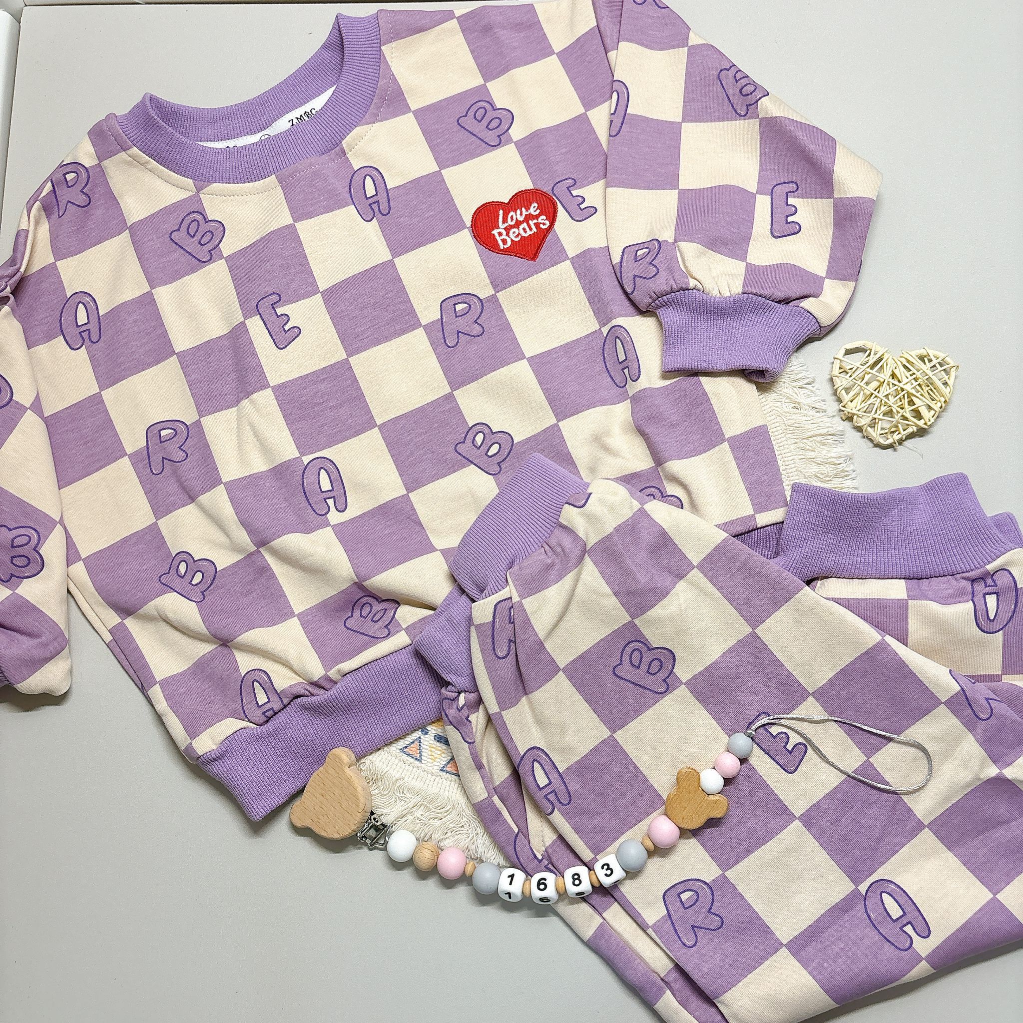 Love Bears兒童薰衣草紫米白格紋字母運動套裝(100)