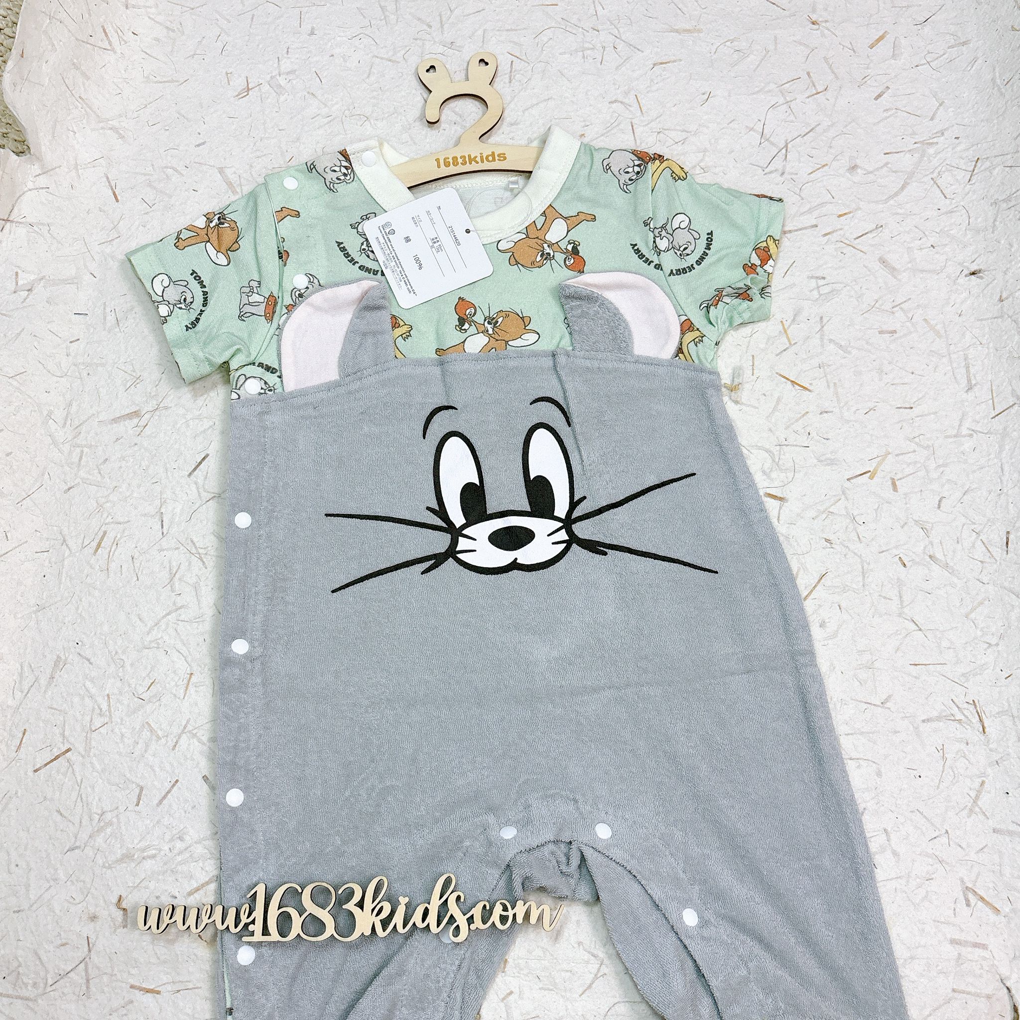 Tom and Jerry 湖水綠拼灰色鼠連身爬服(size:90)