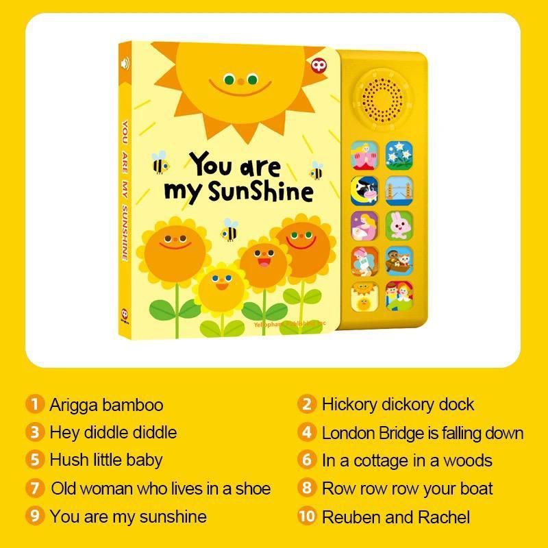 這本迷人的 You Are My Sunshine 音樂書,旨在以有趣和互動的方式吸引幼兒。這款黃色書籍採用可愛的太陽和鮮花設計,不僅是一本故事書,還是一個音樂體驗。這本書配有按鈕面板,可播放 10 首經典童謠,讓孩子們可以一邊閱讀一邊唱歌。