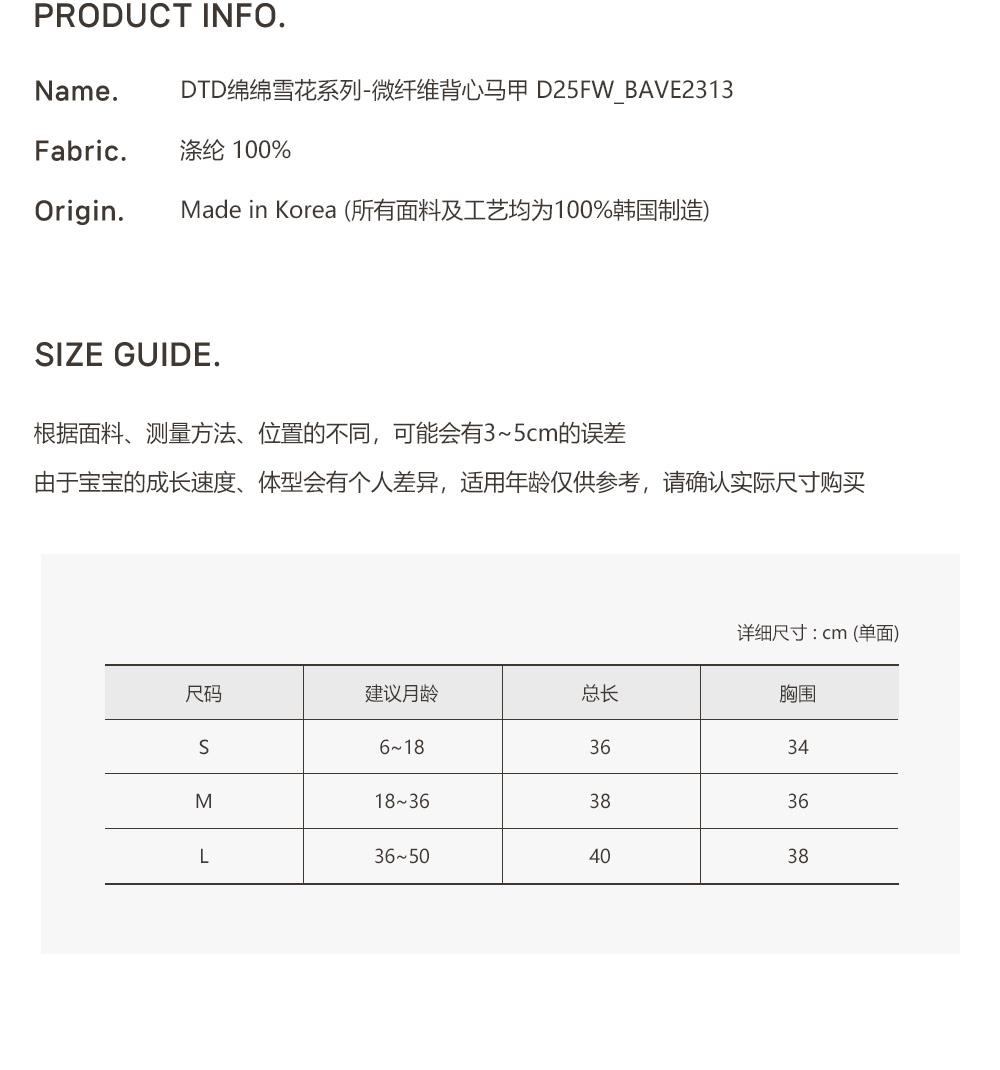 預訂-25F/W DTD綿綿雪花系列-微纖維背心馬甲(貨期7-9週)