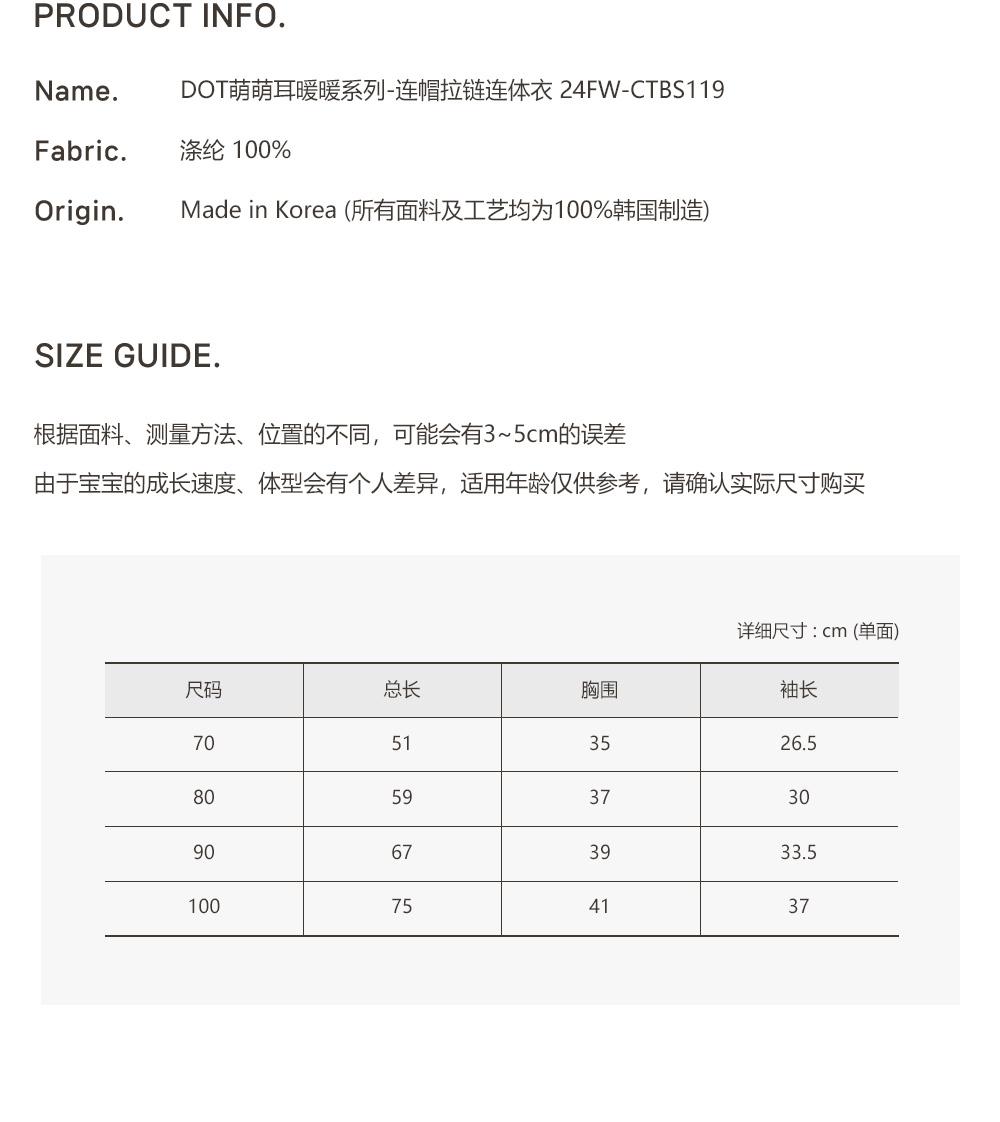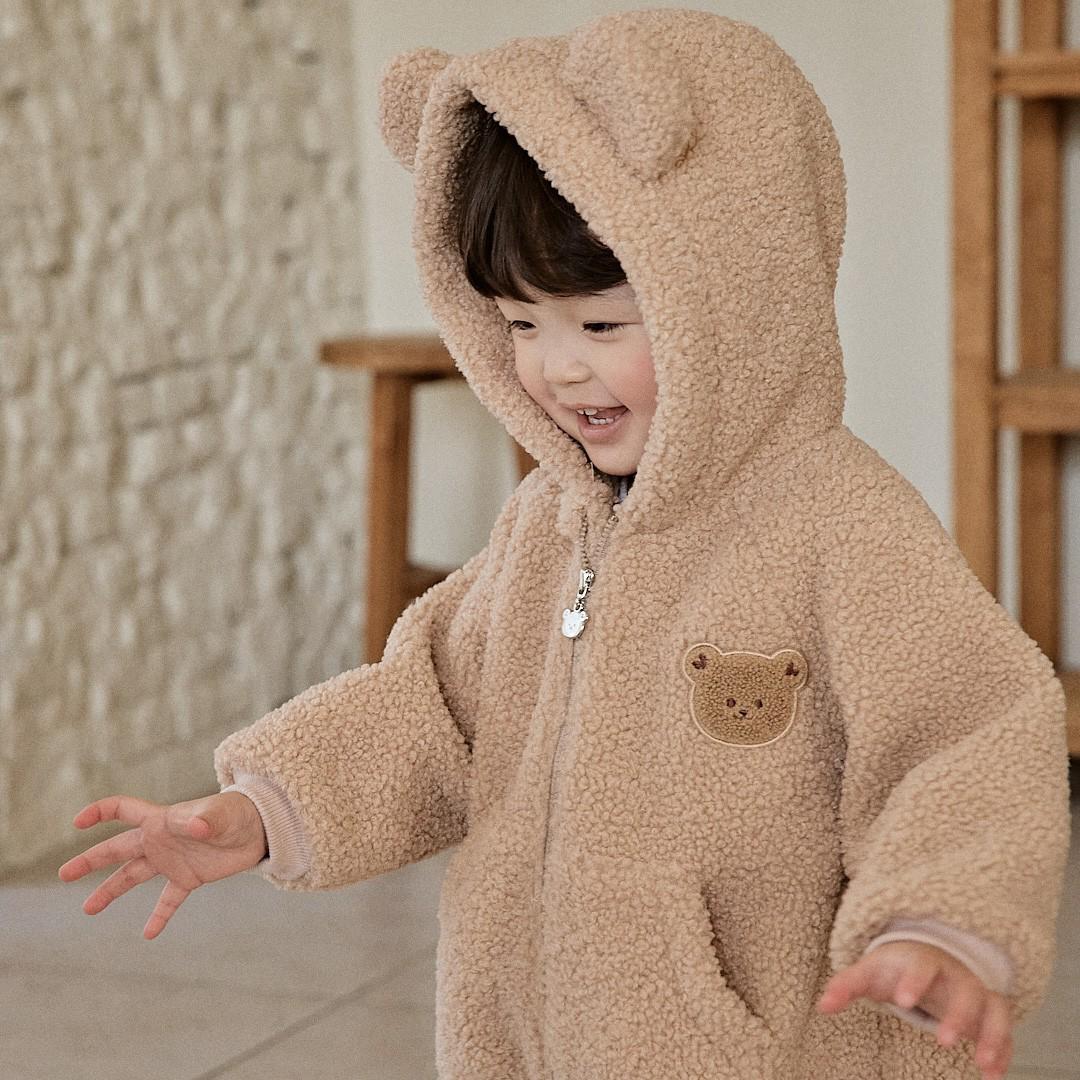 預訂-Fluffy可愛咩咩系列-熊耳連帽拉鍊連身衣(貨期7-9週)